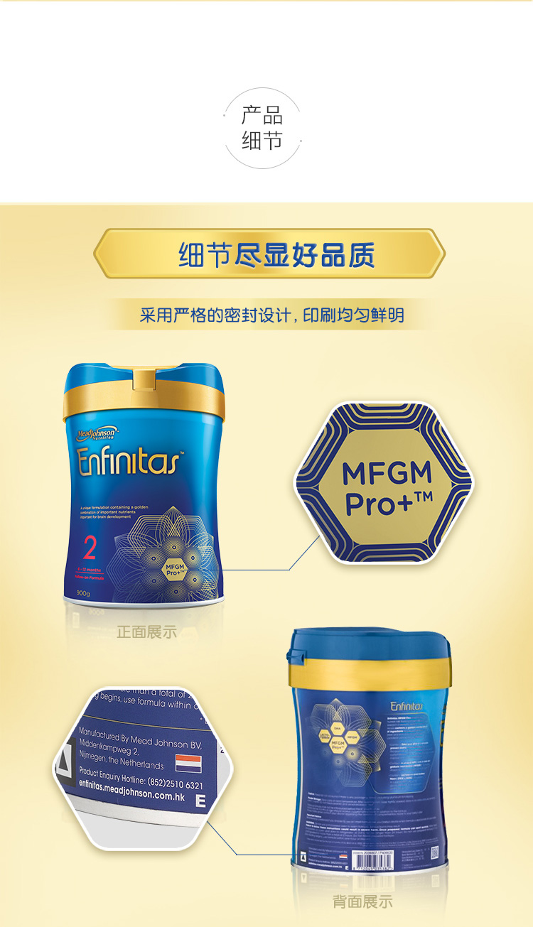 美赞臣Enfinitas港版蓝臻奶粉2段900g*1罐装